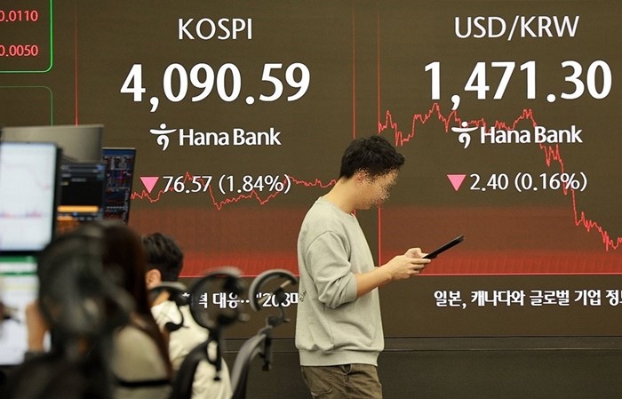 이날 코스피는 전장보다 76.57포인트(1.84%) 내린 4,090.59로 장을 마쳤다.