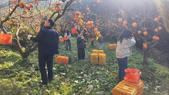| ▲ 사진=지역 일손돕기를 위한 감따기 모습 [제공/더자안] |