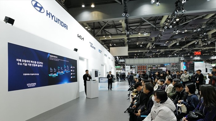 구체적으로 현대차그룹은 PEM 수전해, W2H, 암모니아 크래킹 등 그룹사의 다양한 수소 생산 기술을 목업과 영상 콘텐츠 등을 통해 소개해 관람객들의 직관적인 이해를 도왔다.