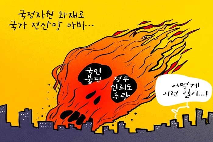 ▲ 데일리-경제만평=정부 전산망 마비 사태…행정정보시스템 복구가 늦어지며 민원 현장 불편 이어져 @데일리매거진 |