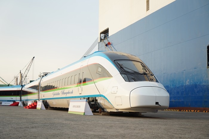현대로템은 10일 경남 창원시 마산항에서 ‘우즈벡 고속차량 초도 편성 출항식’을 진행했다고 밝혔다.