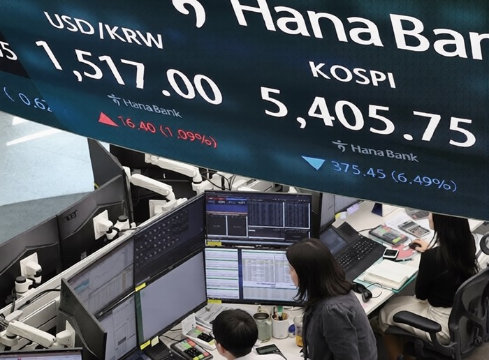 | ▲ 사진=서울 중구 하나은행 본점 딜링룸 전광판 [제공/연합뉴스] |
