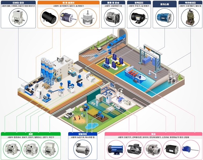 | ▲ 사진=정우전기의 주문형 모터 적용처 [제공/정우전기] |