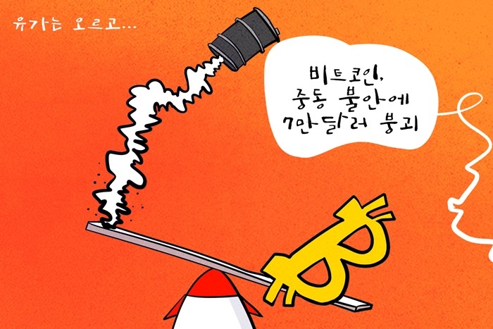 | ▲ 데일리-경제만평=미국과 이란 간 협상 후퇴와 비트코인 옵션 만기…비트코인 7만달러 붕괴 @데일리매거진 |