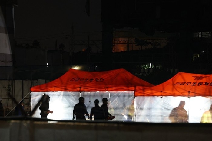 소방 당국은 펌프차 3대 등 장비 총 13대와 인력 50여 명을 투입해 현장에서 2명을 구조했으며, 이후 현장에서 매몰자 2명을 발견해 구조 작업 중이다. 나머지 매몰자 5명도 찾고 있다.