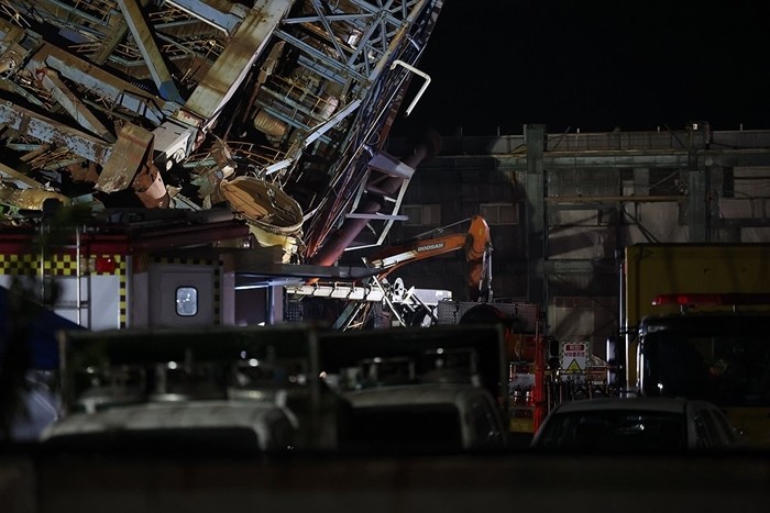 | ▲ 사진=6일 오후 울산시 남구 용잠동 한국동서발전 울산발전본부 울산화력발전소 보일러 타워 붕괴 사고 현장에서 야간작업 [제공/연합뉴스] |