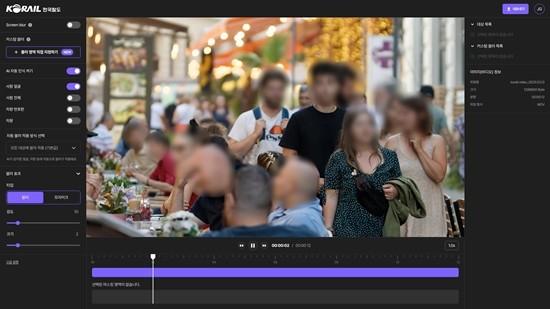 | ▲ 사진=자라소프트 '블러미 엔터프라이즈' 구동 화면. AI가 영상 속 다수의 인물을 정밀하게 감지해 자동으로 모자이크 처리 [제공/자라소프트] |