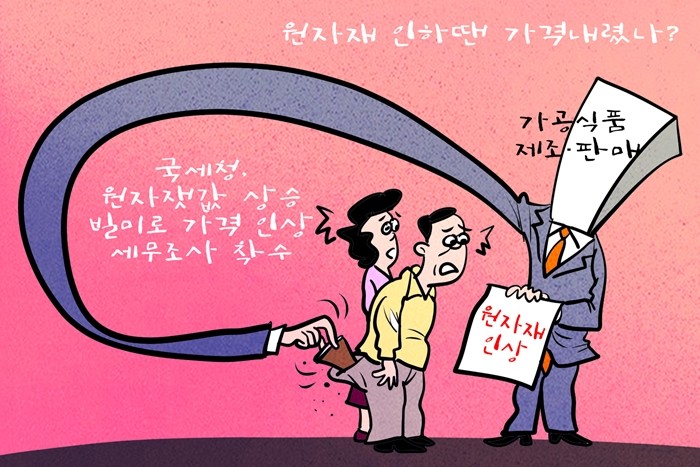 ▲ 데일리-경제만평=국세청, 원자재값 상승 빌미로 가격 인상한 식품·외식업체 세무조사 착수 @데일리매거진 |